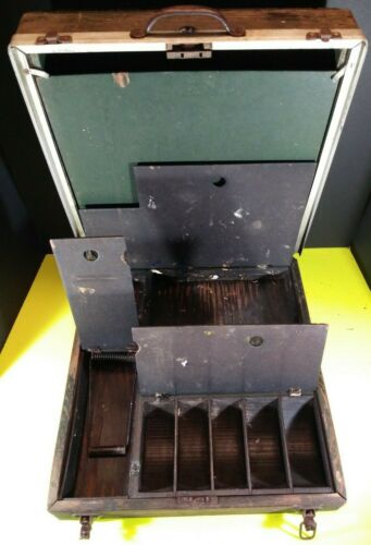 Old Wooden Vintage Briefcase Cash Box