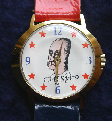 Title (ebay affiliate link): VINTAGE 1970'S SPIRO AGNEW COMICAL WRIST WATCH, RUNNING