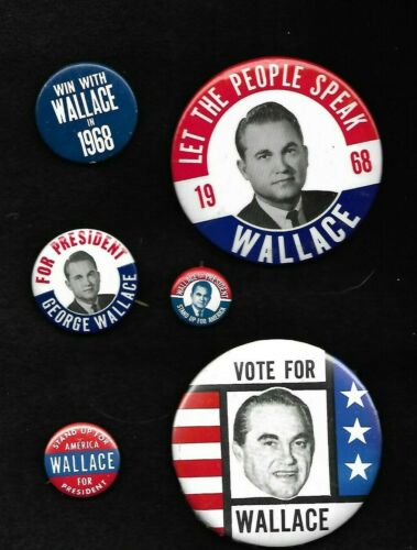 Title (ebay affiliate link): 6 GEORGE WALLACE Presidential hopeful campaign buttons from 1968 AL Governor