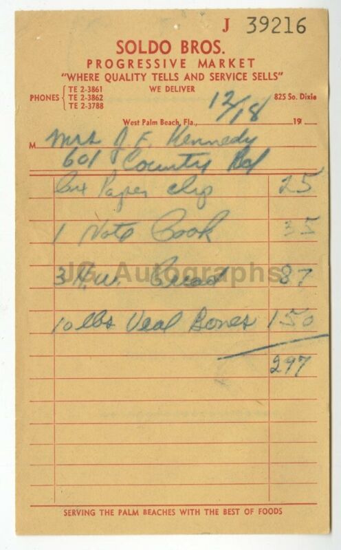 Title (ebay affiliate link): John F. Kennedy Original 1960s Receipt from Soldo Bros. Grocery Store