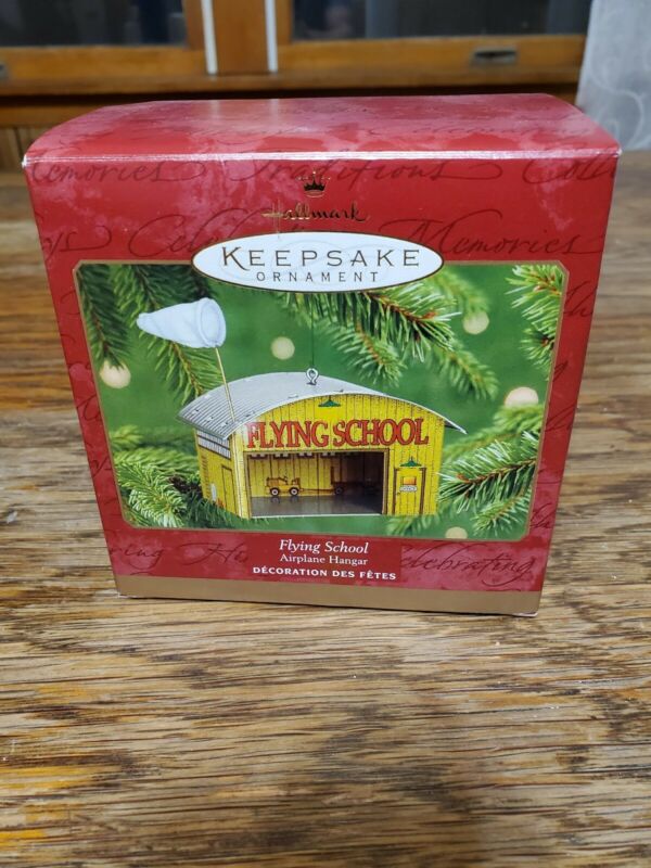 Title (ebay affiliate link): 2001 HALLMARK PRESSED TIN FLYING SCHOOL AIRPLANE HANGER ORNAMENT