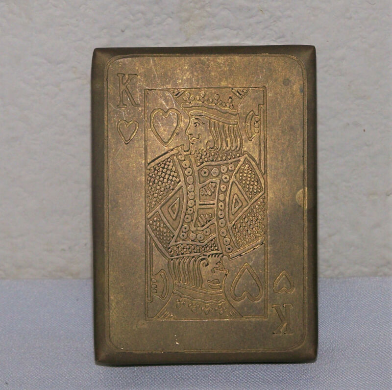 Title (ebay affiliate link): Vintage Brass Card Holder Box With Etched King of Hearts