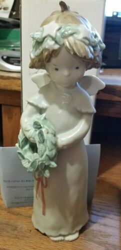 Enesco Kinka Christmas Angel Figurine "It''s time for Christmas" -Holding Wreath