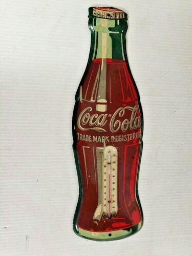 Title (ebay affiliate link): Circa 1950s Coca-Cola Trade Mark Registered Flat Tin Metal Thermometer