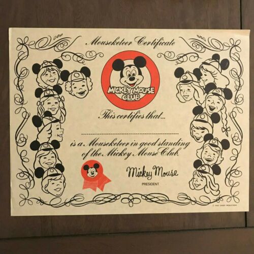Title (ebay affiliate link): Original Mouseketeer Mickey Mouse Club Certificate - Walt Disney Productions
