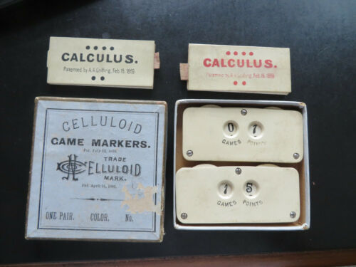 Antique CELLULOID GAME MARKERS for playing cards Original Box 1800''s +2 CALCULUS