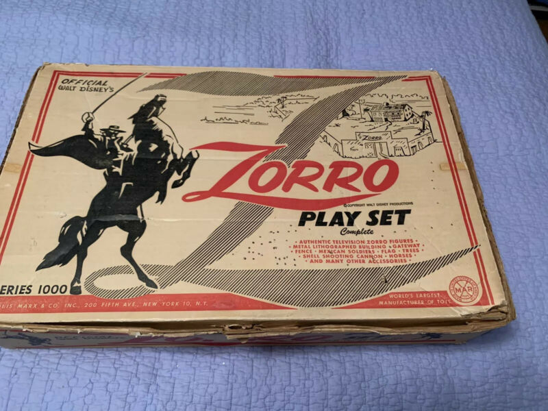 Title (ebay affiliate link): Marx Official Walt Disneys Zorro Play Set with the rare Zorro Cave 1958