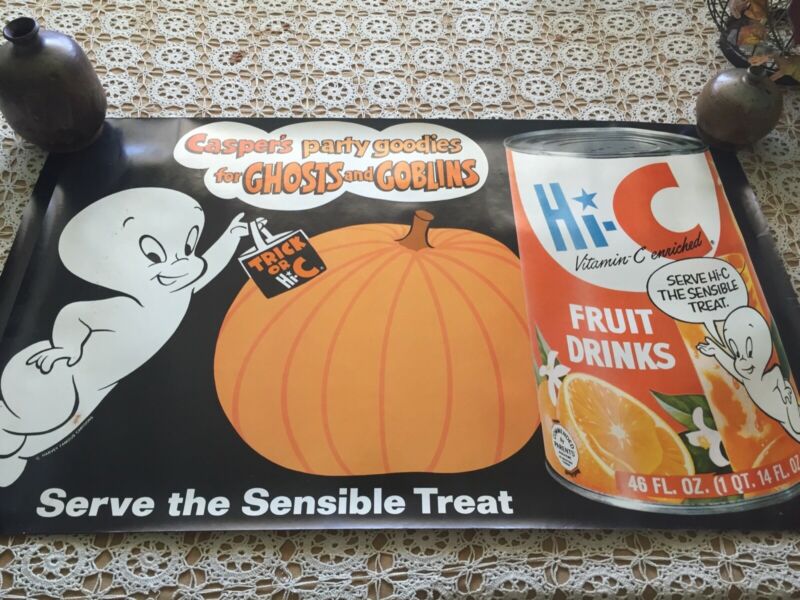 Title (ebay affiliate link): Vintage Casper the Friendly Ghost Advert Poster 37w 24L, HiC Halloween Theme.