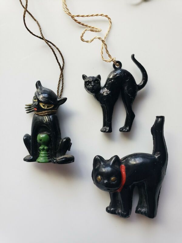 Title (ebay affiliate link): 3 VINTAGE GERMAN ART DECO BLACK CATS PAINTED ZELL MOSEL, SCHEIDER CHARMS