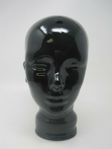 Vintage Black Glass Mannequin Head Hat Wig Scarf Sunglass Display Store 11.5"