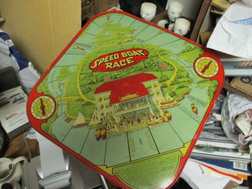 Title (ebay affiliate link): RARE 1920s LITHO TIN GAME BOARD SPEED BOAT RACE GREAT GRAPHICS