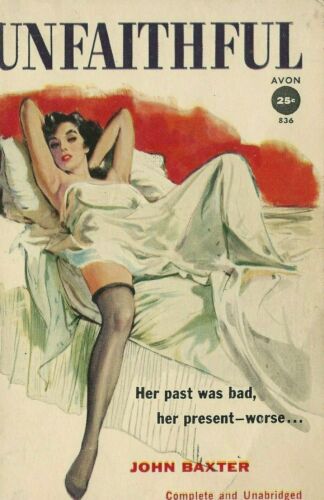 Title (ebay affiliate link): Avon Paperback 836 Unfaithful by John Baxter Vintage Sleaze Mystery Paperback