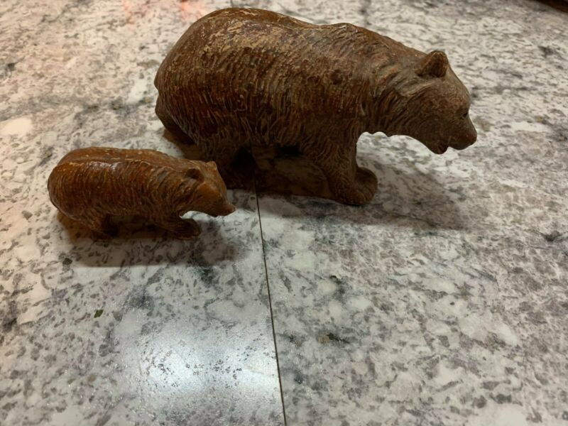 Nice Vintage German Black Forest Carved Wood Bear momma and cub
