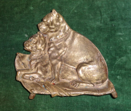 Old Vintage Brass Dish or Dresser Tray w 2 Pit Bulls / Boxer Dogs