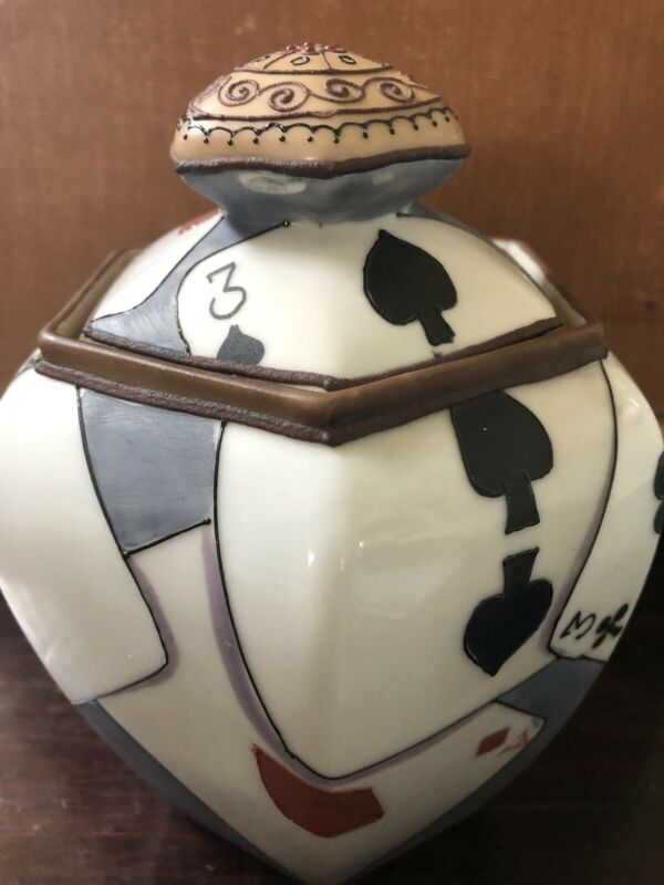 NIPPON HAND PAINTED Japan CARDS HUMIDOR TOBACCO Ginger Biscuit JAR