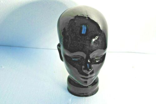 Vintage Black Glass Mannequin Head Hat Wig Scarf Display store art
