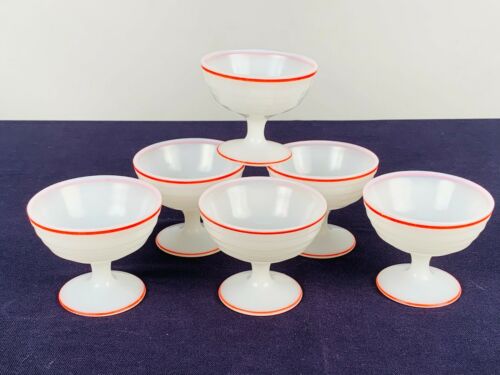 Title (ebay affiliate link): 6 Hazel Atlas RED Strip & WHITE milk glass 3" FOOTED SHERBET Dessert Dish