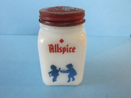 Vintage Frank Tea & Spice Co. White Milk Glass Allspice Jar Shaker w Lid