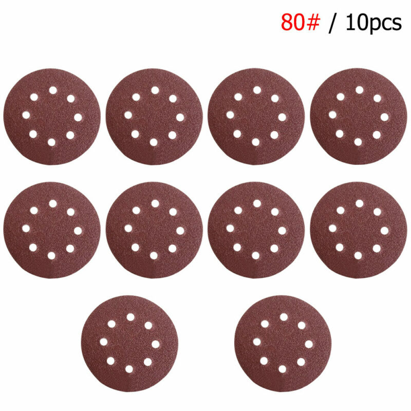 10pcs Sandpapers Set 5Inch 8Hole Round Grit 80 Hook Loop Sanding Discs1