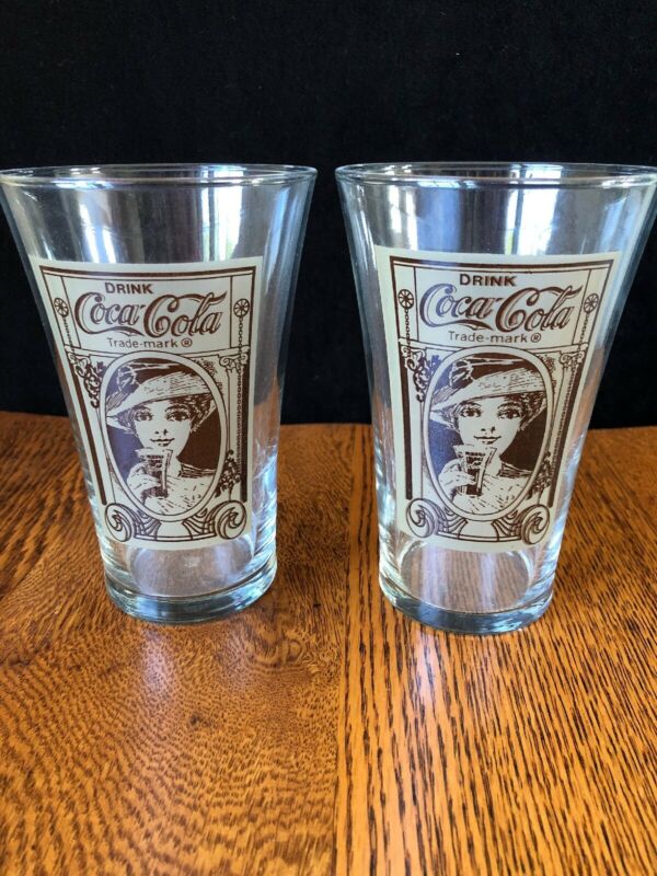 Title (ebay affiliate link): Vintage Coca-Cola Tumblers Woman Drinking Coca-Cola Production Flare Glasses 2