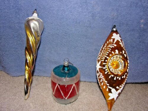3/ Icicle Germany Glass Christmas Tree Ornaments W. Glitter/ lg. oval indent/dr