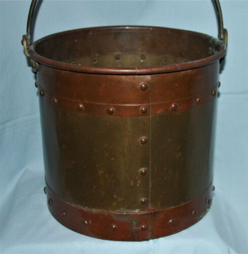 Old Vintage or Antique Copper & Brass Riveted Bucket w/Handle Primitve Rustic