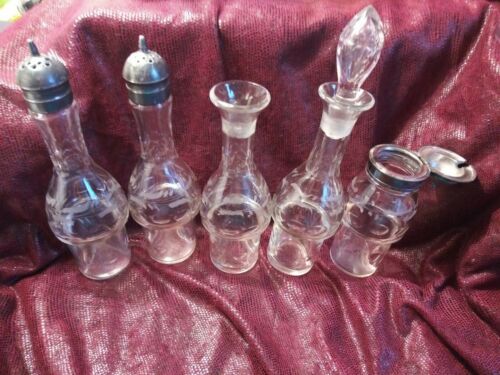 5 antique glass bottles & cruets for MERIDEN silverplate castor