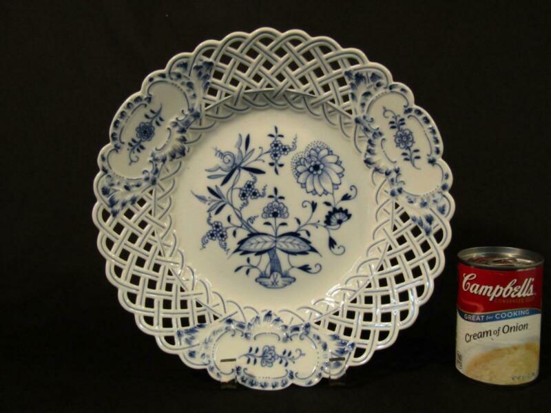 FINE ANTIQUE MEISSEN 12" RETICULATED CHARGER PLATE - BLUE ONION PATTERN