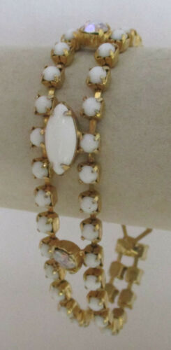 Vintage Milk Glass Cabochon/Crystal Rhinestone Bracelet