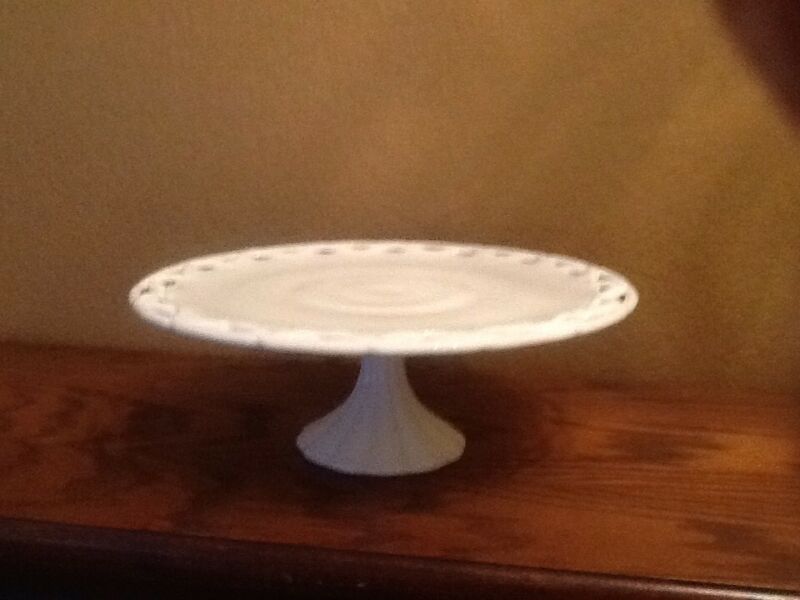 Title (ebay affiliate link): Vintage Fenton Spanish Lace White Milk Glass Pedestal Cake Stand 13" dia.