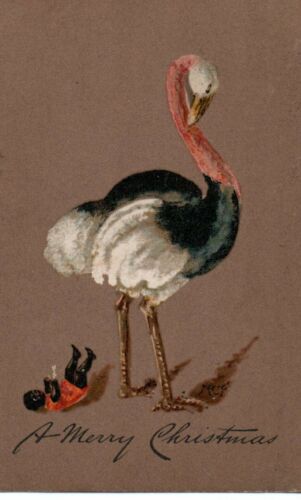 Title (ebay affiliate link): VINTAGE TUCK CHRISTMAS GREETING postcard: OSTRICH BIRD? & BLACK DOLL MCF Cavile