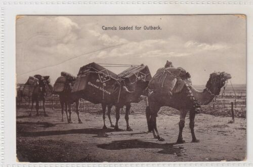 VINTAGE POSTCARD CAMELS LOADED FOR THE OUTBACK BROKEN HILL NSW 1900s