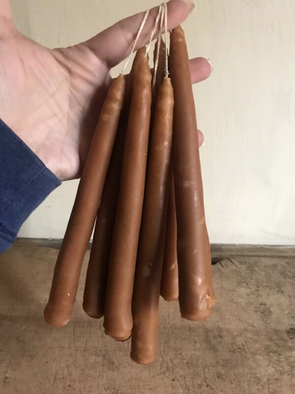 Title (ebay affiliate link): 4 Pairs LONG Hand Dipped Brown Beeswax Attached Wick Hanging Taper Candles #3