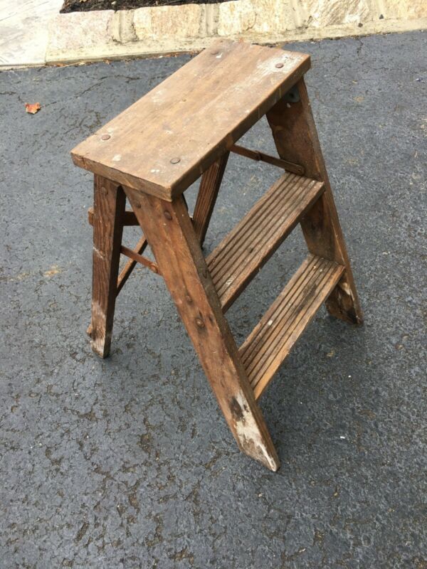 Title (ebay affiliate link): Vintage Rustic Primitive Farm Country Wooden Step Ladder Folding Stool 2 Step