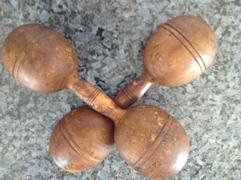Antique vintage D&M Maple Wood 2 lb. Hand Weight Dumbbells Exercise Old Sporting