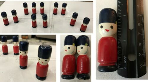 Vintage lot of 11 SMALL COLORFUL WOODEN TOY SOLDIERS 2.5 inches VG condition