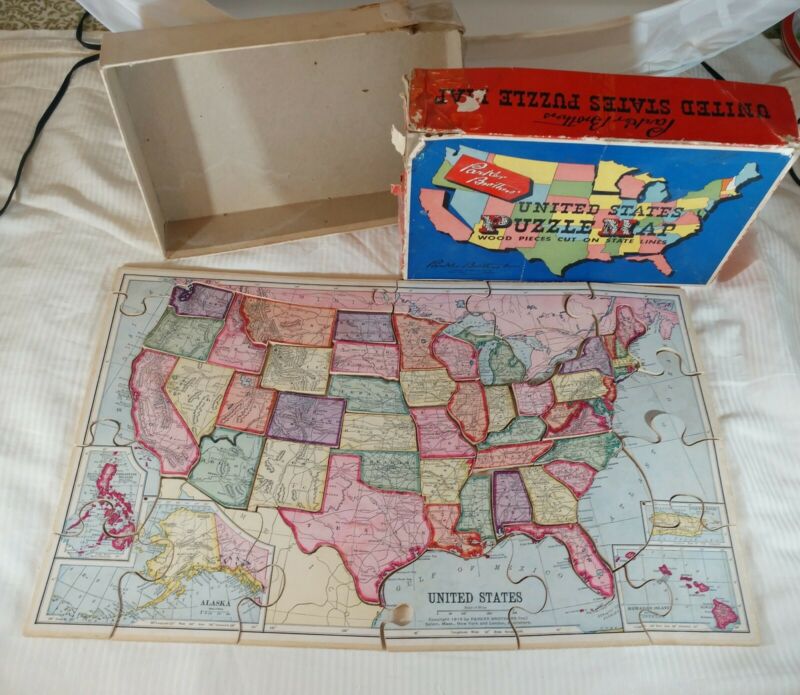 Vintage Parker Brothers United States Puzzle Map - Wooden Pieces, COMPLETE