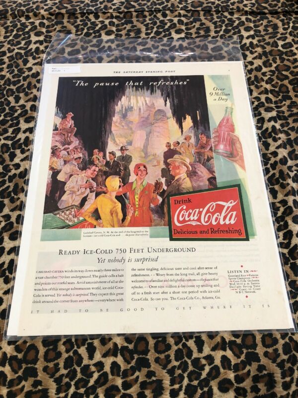 Title (ebay affiliate link): COCA COLA Ad Advertisement VINTAGE POST 1931 CARLSBAD CAVERN NEW MEXICO c272