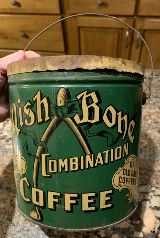 Title (ebay affiliate link): Vintage Wish Bone Coffee 4 Pound Tin-Bunn Capitol Grocery Co