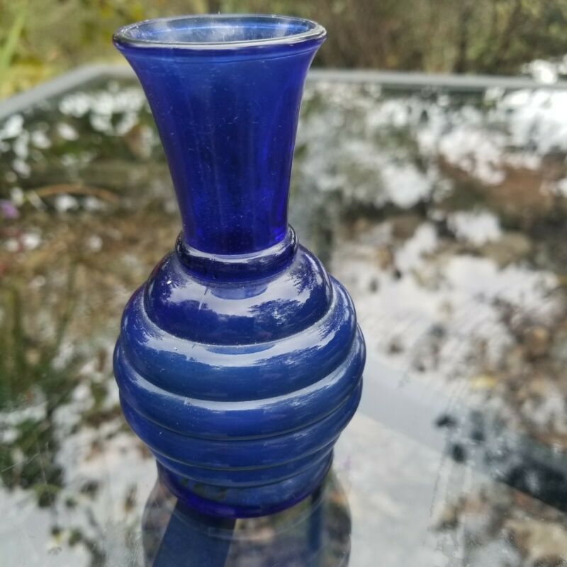 Title (ebay affiliate link): Vintage Depression Glass Cobalt Blue Beehive Vase 4-1/2" tall. Marked USA 2.