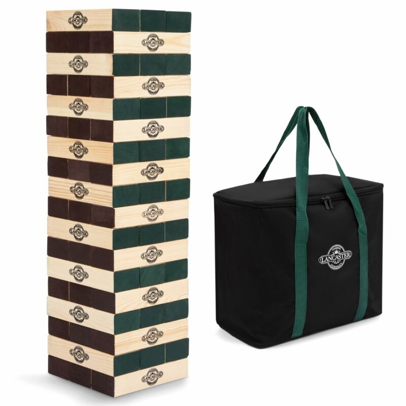 Title (ebay affiliate link): Lancaster Gaming Company Giant Wooden Tumbling Tower Outdoor Game, Black & Pine