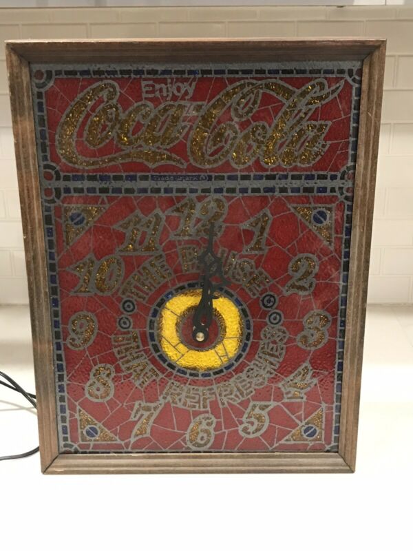 Title (ebay affiliate link): Vintage Rare Faux Stained Glass Wooden Coca Cola Light Up Clock 17" x 13" READ