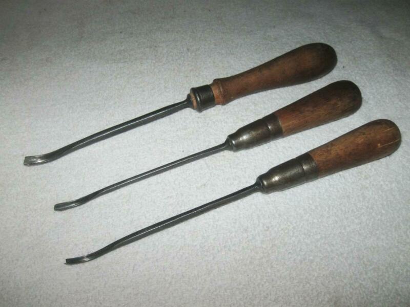 Vintage Buck Brothers Bent V-Parting Wood Carving Gouge Lot - 1/8", 3/16", 1/4"