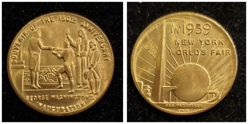 1939 New York Worlds Fair Coin Token Medal Medallion 150 Anniversary Washington