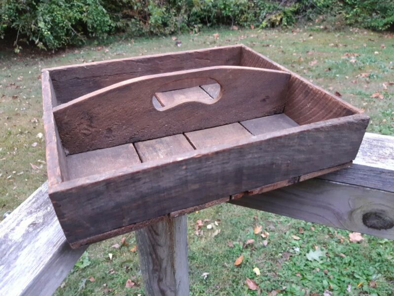 Antique Primitive WOODEN TOTE / CARRIER - rough cut wood NICE PATINA