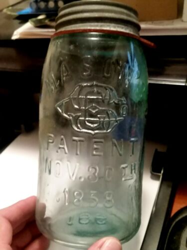 Title (ebay affiliate link): Antique 7.25" Blue Mason''s Patent Nov 30th, 1858 Glass Fruit Jar "166" #30/56