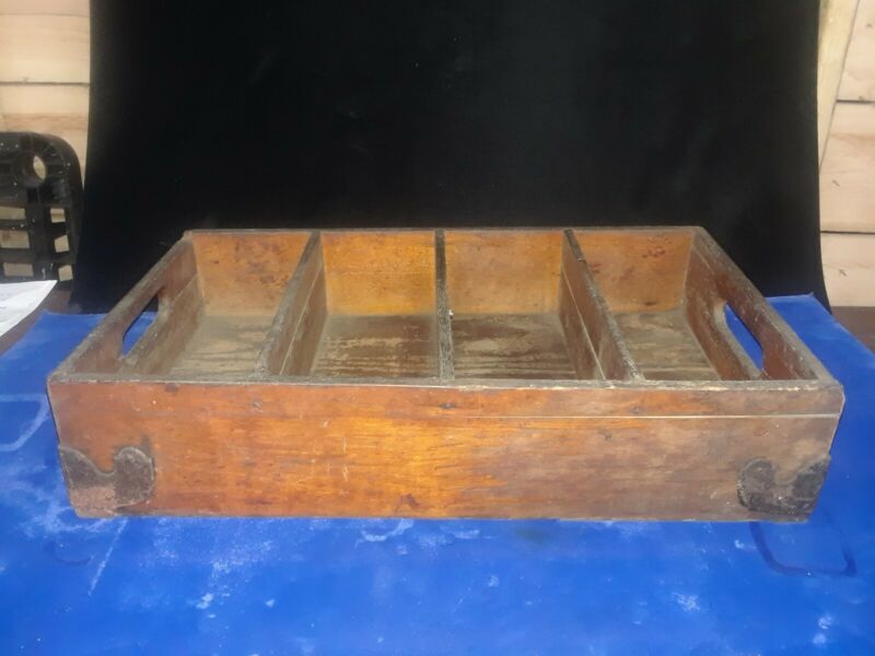 Beautiful Antique Wood Serving Tray Wrought Iron Pub Dividers
