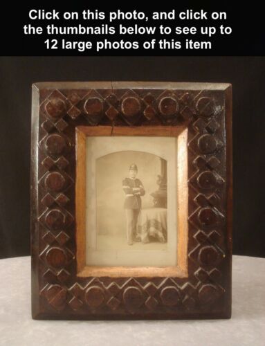 UNUSUAL Old Antique Vintage TRAMP ART Carved Wood FRAME w/PRUSSIAN SOLDIER PHOTO