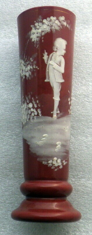 Title (ebay affiliate link): Mary Gregory with Boy and Trees in White on Opaque Burnt Orange 5" Vase