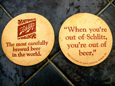Title (ebay affiliate link): Vintage Schlitz Beer 2-Sided Beer Coasters X6 - 1965